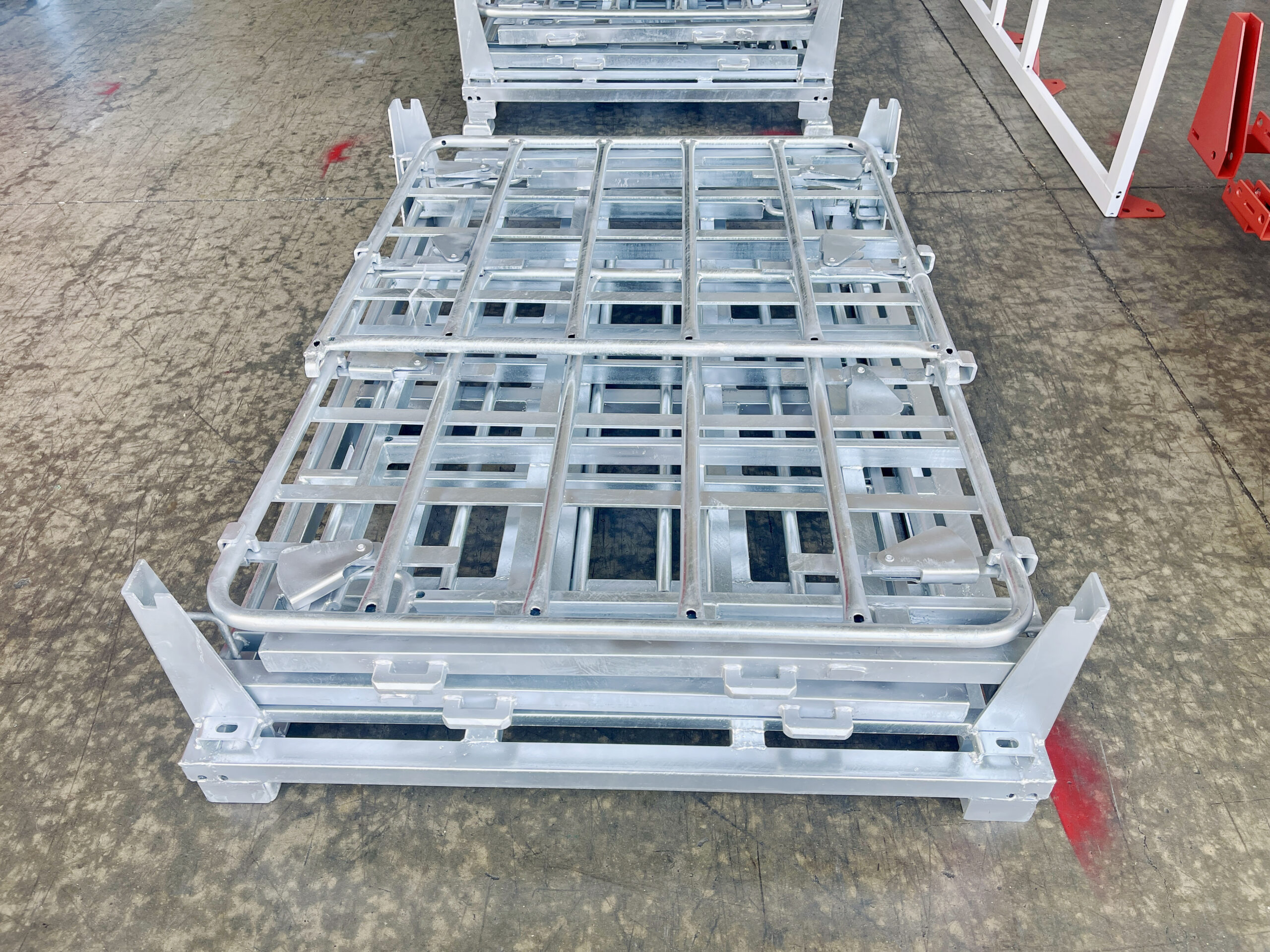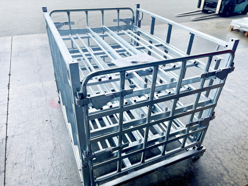 非常に特殊な物品を積載し輸送・保管に使用される折りたたみ式鋼製パレットです。
