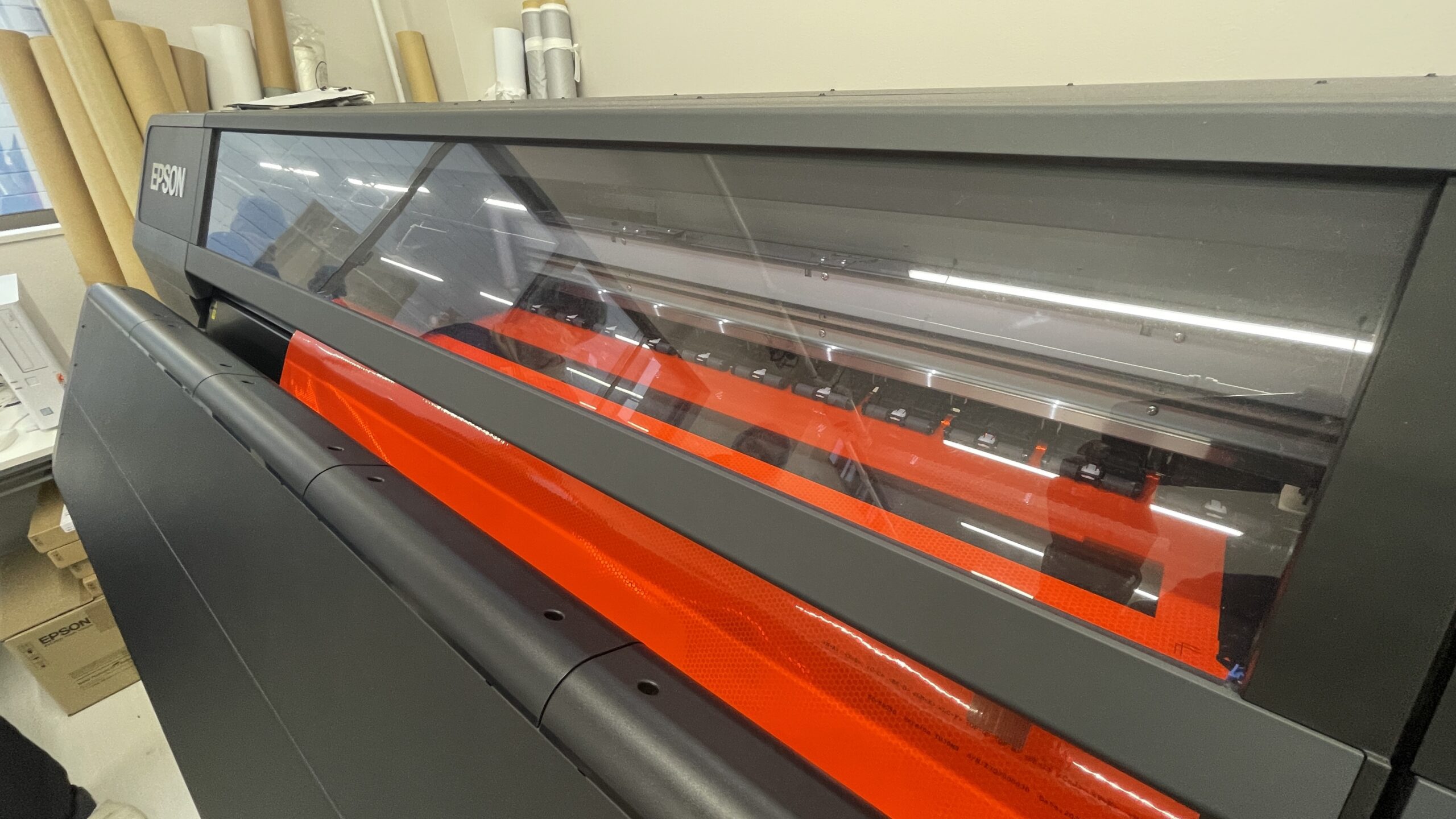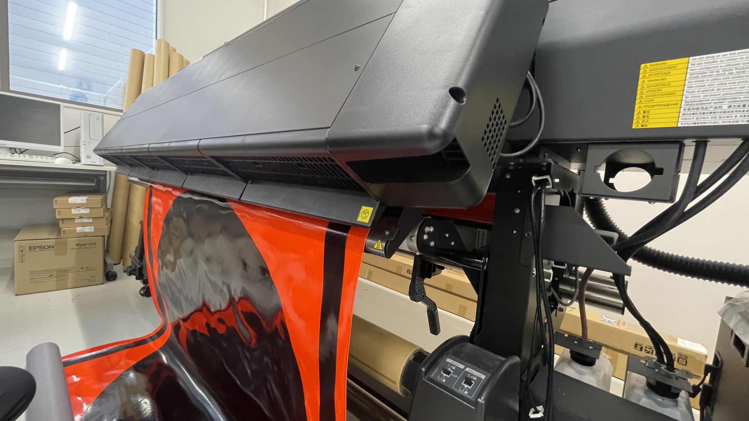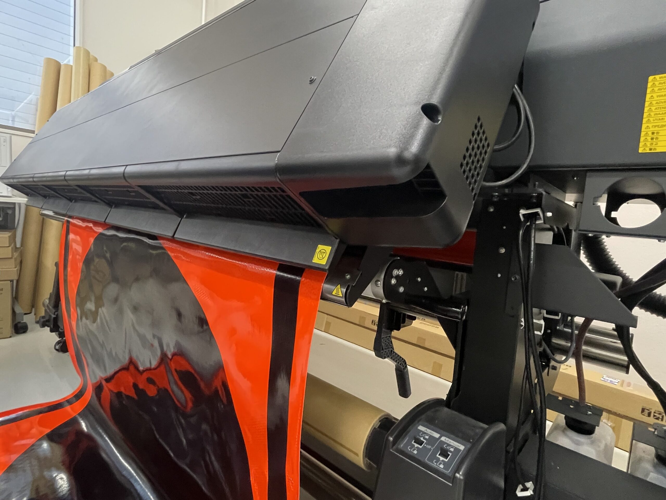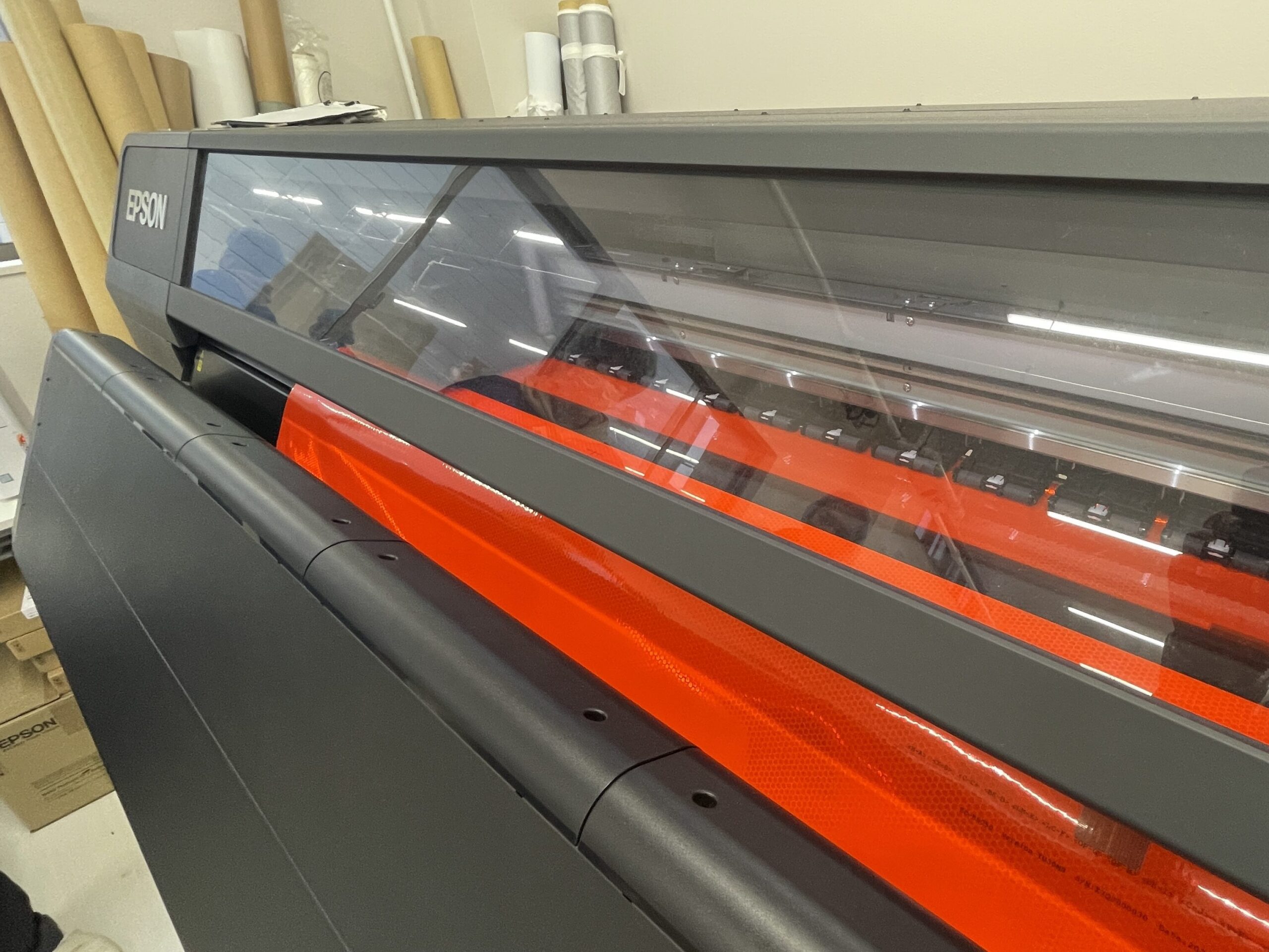 使用する高輝度反射シートに大型インクジェットプリンタで印字していきます。一見単純なプリントですが、ベタ塗り印字ではインクジェットプリンタのメーカーさんも知らない加工工場ならではの専門的で独自のノウハウを用いた印字が要求されます。