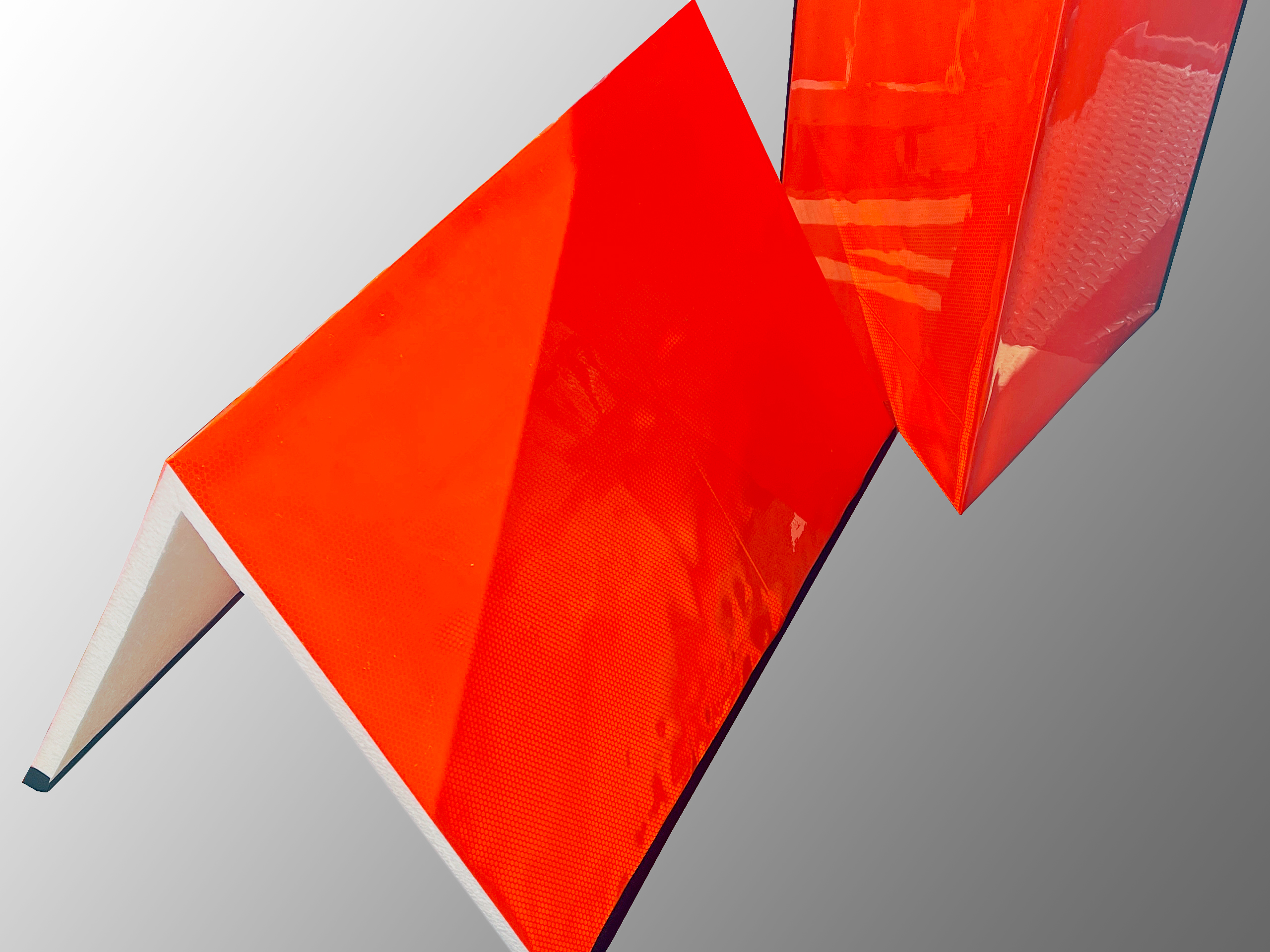 本製作依頼品のコアとなるのは反射材・反射シートです。当社ではORAFOL社製反射材使用で製作提案をさせていただいております。今回使用する反射材は通常クラスの反射性能のものですが、反射輝度1,000cd/luxと言う世界最高水準の反射材の取扱もしておりますが、用途や目的に合わせ最適な反射材をご提案させていただいております。また、反射材の2次加工・3次加工などにつきましても対応致しますのでご相談ください。
