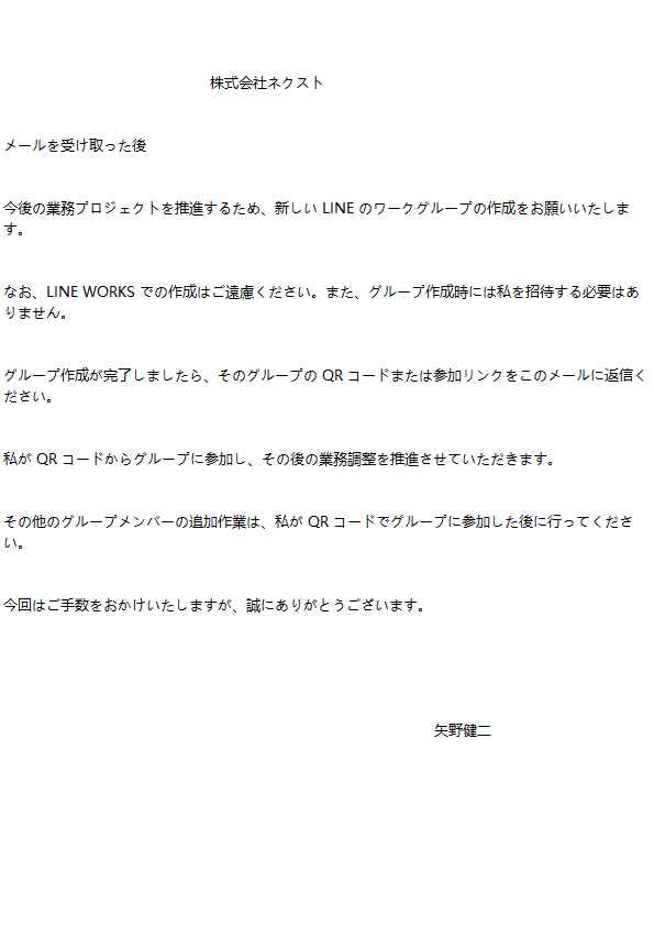 また、当社では業務でLINEやMessengerを使用した連絡のやり取りはしておりません。私自身もLINEのアカウントは持っておりませんし、スマートフォン等のデバイスにインストールもしておりません。「当社をかたるLINEメッセージは全て詐欺である」と理解いただいて問題ございません。