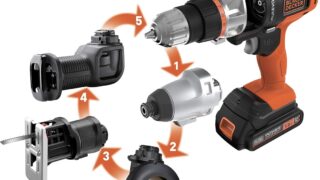 新しく購入したものは、電動ドリル・電動ドライバーとしてだけではなく、電動インパクトレンチ・電動ノコギリ・電動丸ノコとしても機能するアタッチメントが付属しているものです。「何だ、ブラック&デッカーか」と思われる方もおられると思いますが、プロではないのでBOSCHやMakitaではないこのメーカーの製品で十分なのです。製品試作やちょっとした加工に使えれば良し-と言うことで。